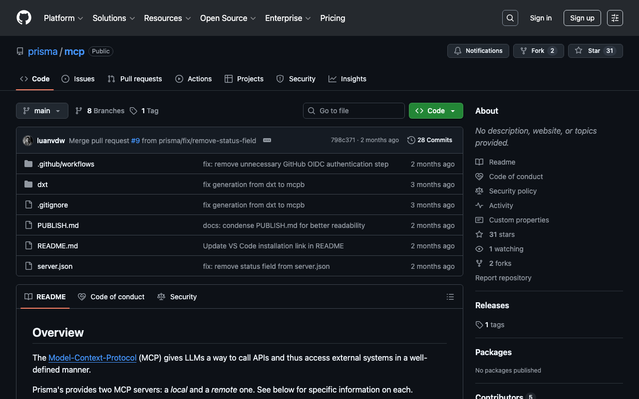 MCP server that extends Claude's capabilities with prisma/MCP integration. Enables seamless interaction between Claude and prisma/MCP services through the Model Context Protocol.