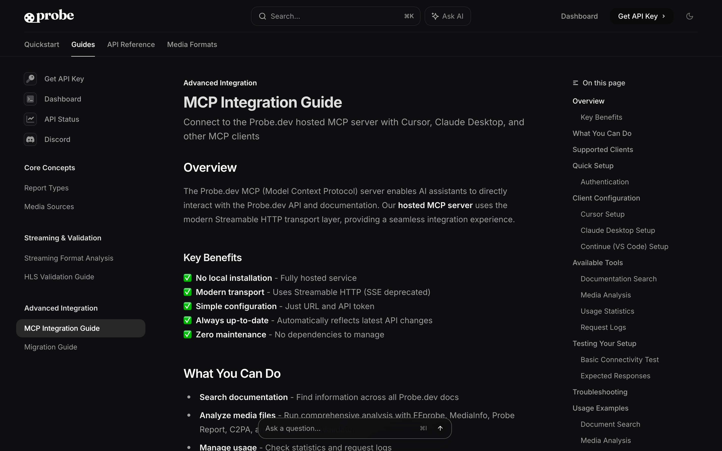 Comprehensive media analysis and validation powered by [Probe.dev](https://probe.dev). Hosted MCP server with FFprobe, MediaInfo, and Probe Report analysis capabilities.