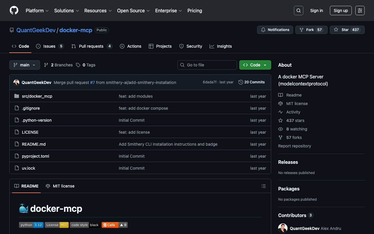 Extend Claude with QuantGeekDev docker mcp capabilitiesIntegrate external data into AI conversationsAutomate workflows combining Claude with specialized servicesBuild custom AI-powered development tools