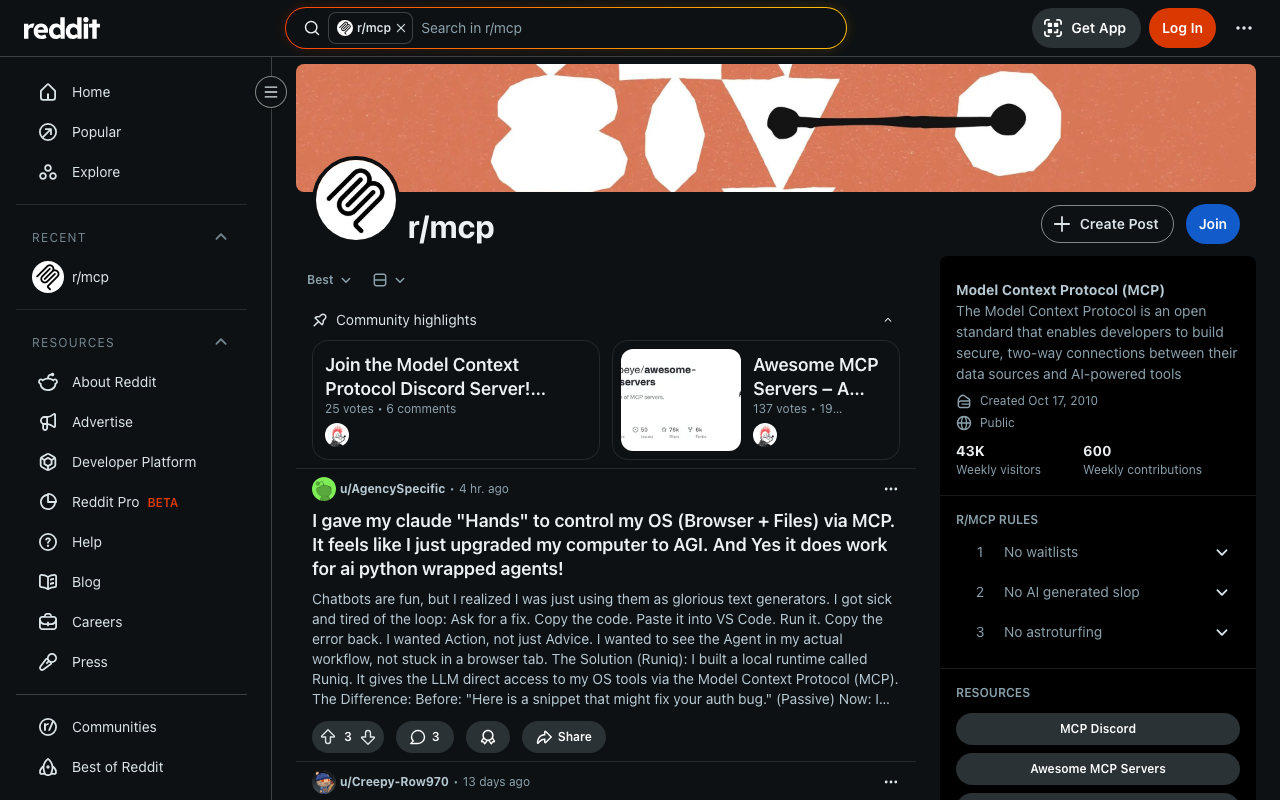 MCP server that extends Claude's capabilities with r/MCP Reddit integration. Enables seamless interaction between Claude and r/MCP Reddit services through the Model Context Protocol.