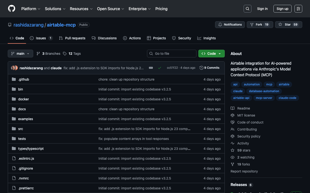 Extend Claude with rashidazarang airtable mcp capabilitiesIntegrate external data into AI conversationsAutomate workflows combining Claude with specialized servicesBuild custom AI-powered development tools