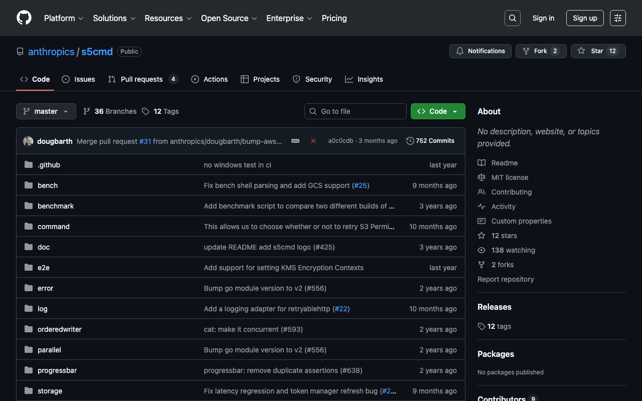 Official Anthropic resource for s5cmd. Part of the Claude ecosystem maintained by Anthropic.