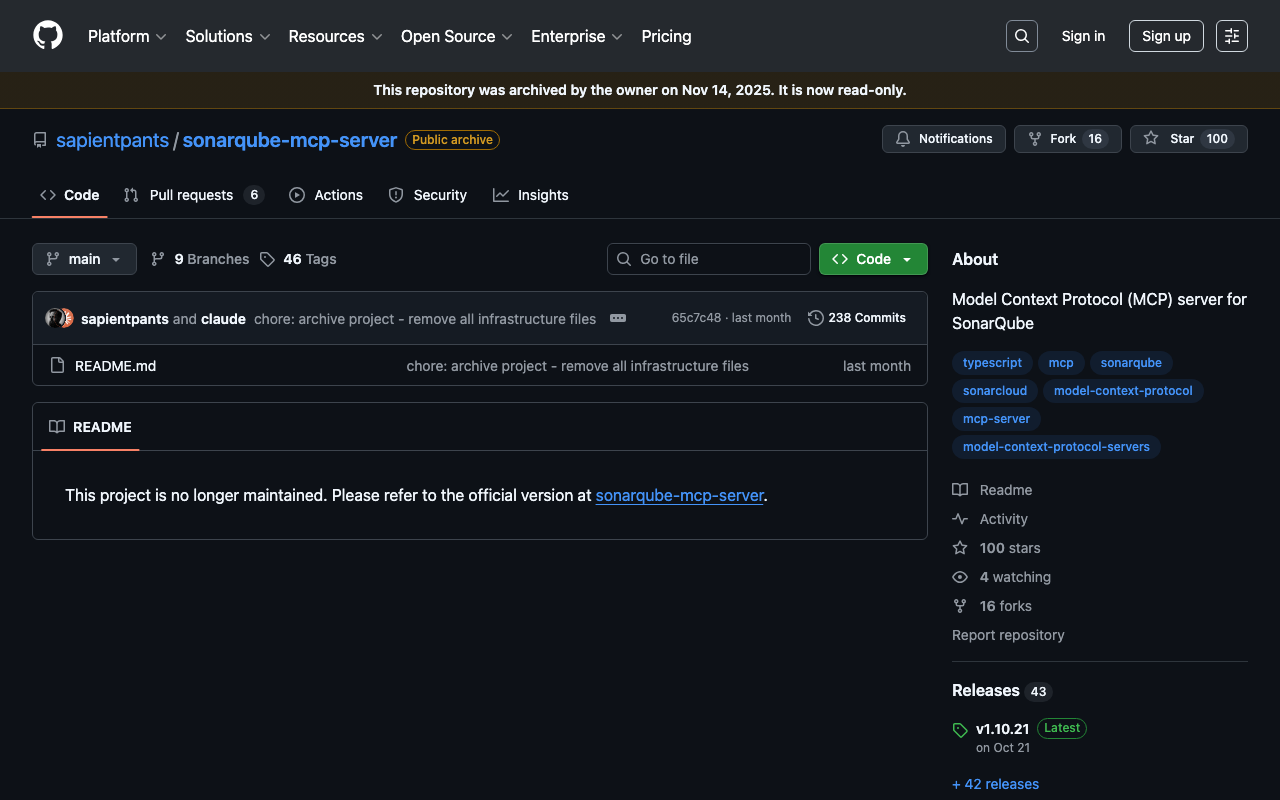 Extend Claude with sapientpants sonarqube mcp server capabilitiesIntegrate external data into AI conversationsAutomate workflows combining Claude with specialized servicesBuild custom AI-powered development tools