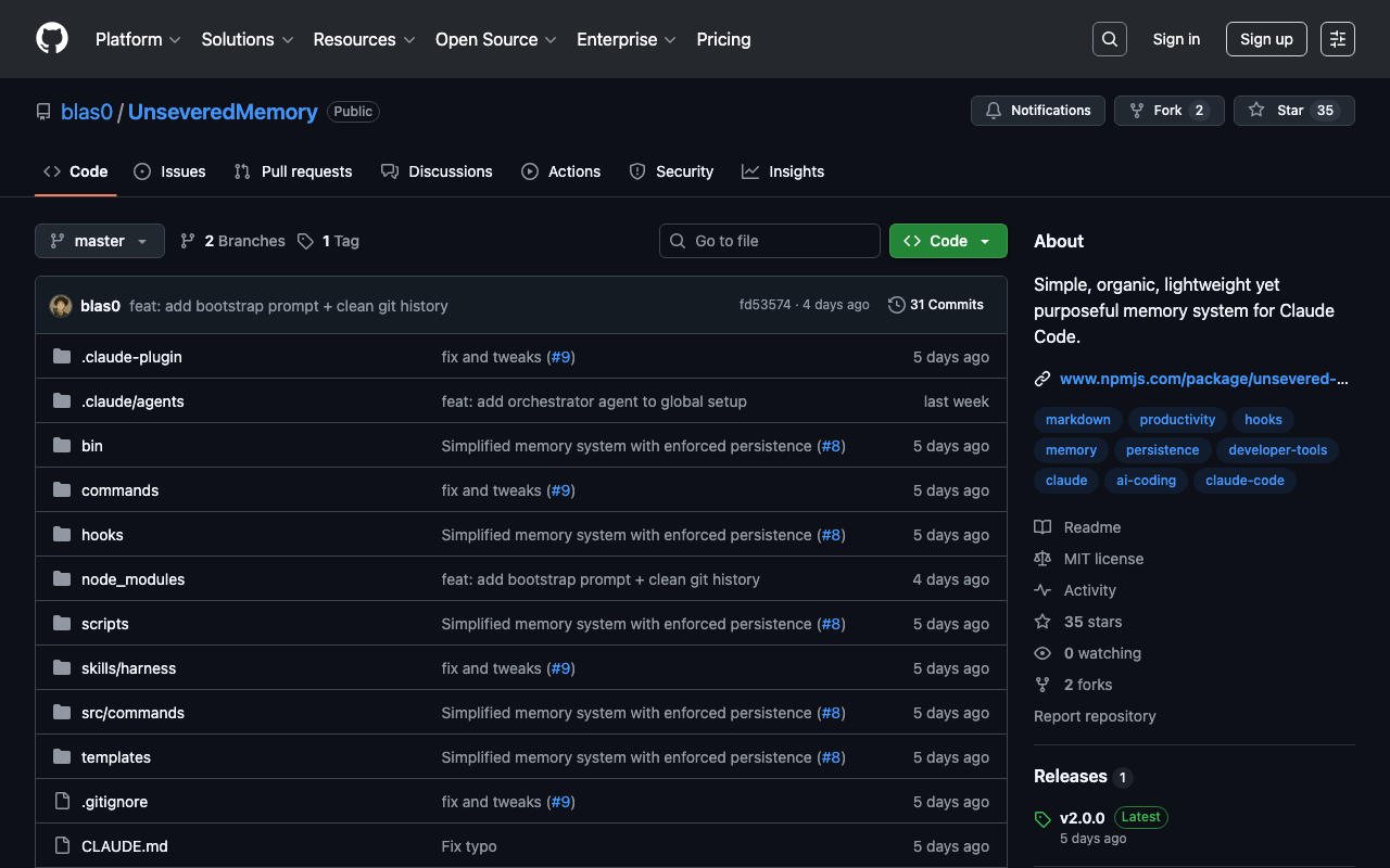 Simple, organic, lightweight yet purposeful memory system for Claude Code.