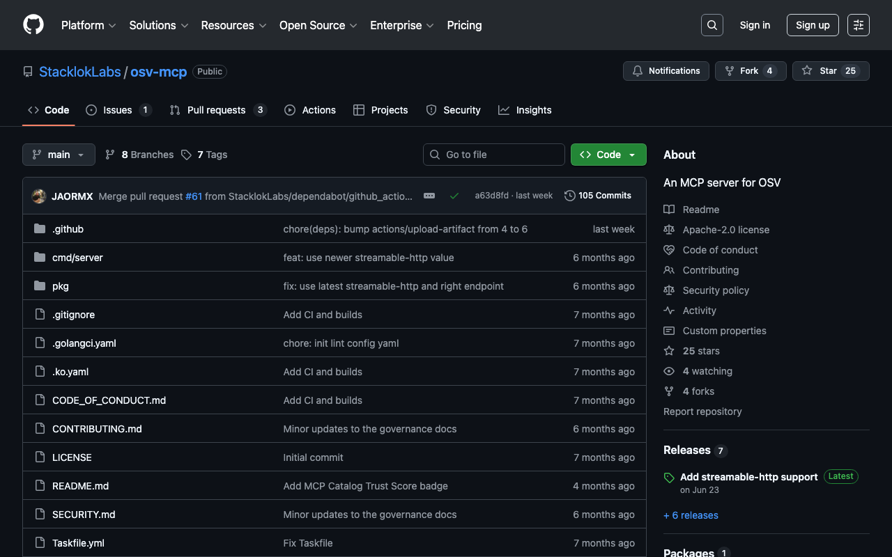 Extend Claude with StacklokLabs osv mcp capabilitiesIntegrate external data into AI conversationsAutomate workflows combining Claude with specialized servicesBuild custom AI-powered development tools