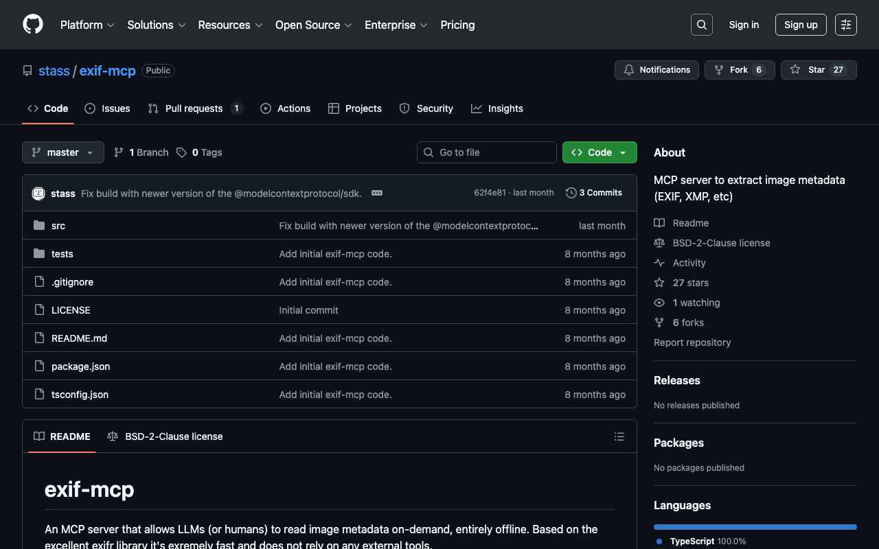 Extend Claude with stass exif mcp capabilitiesIntegrate external data into AI conversationsAutomate workflows combining Claude with specialized servicesBuild custom AI-powered development tools
