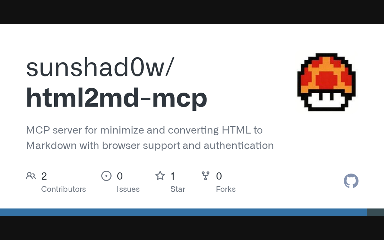 MCP server for converting HTML to Markdown with browser support and authentication. Reduces HTML size by 90-95% using trafilatura and BeautifulSoup4, with Playwright integration for JavaScript-rendered content.