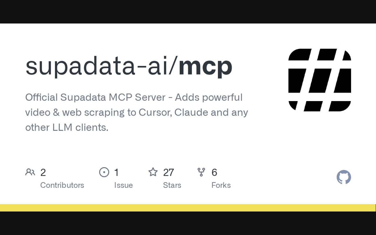 Official MCP server for [Supadata](https://supadata.ai) - YouTube, TikTok, X and Web data for makers.