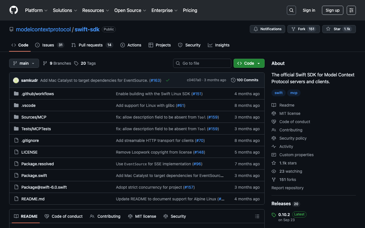 The official Swift SDK for Model Context Protocol servers and clients.
