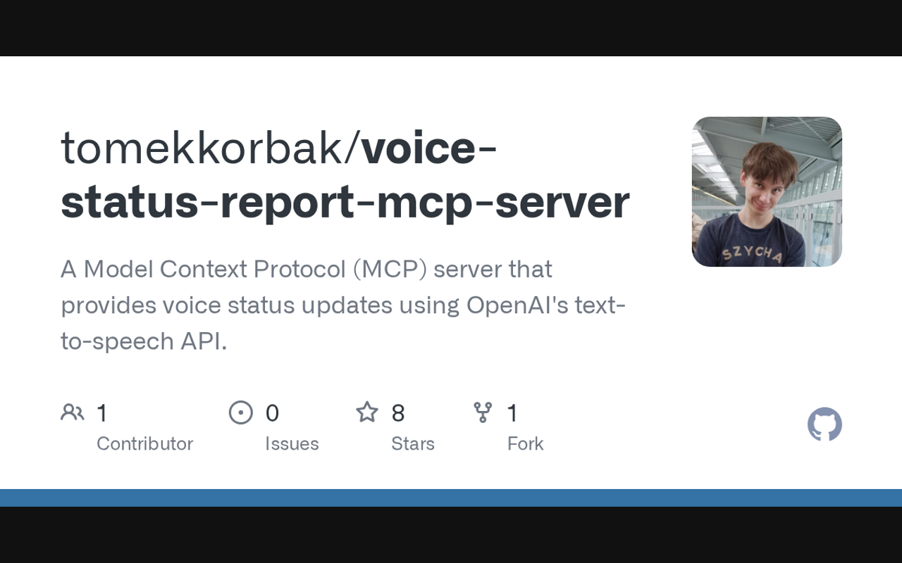 An MCP server that provides voice status updates using OpenAI's text-to-speech API, to be used with Cursor or Claude Code.