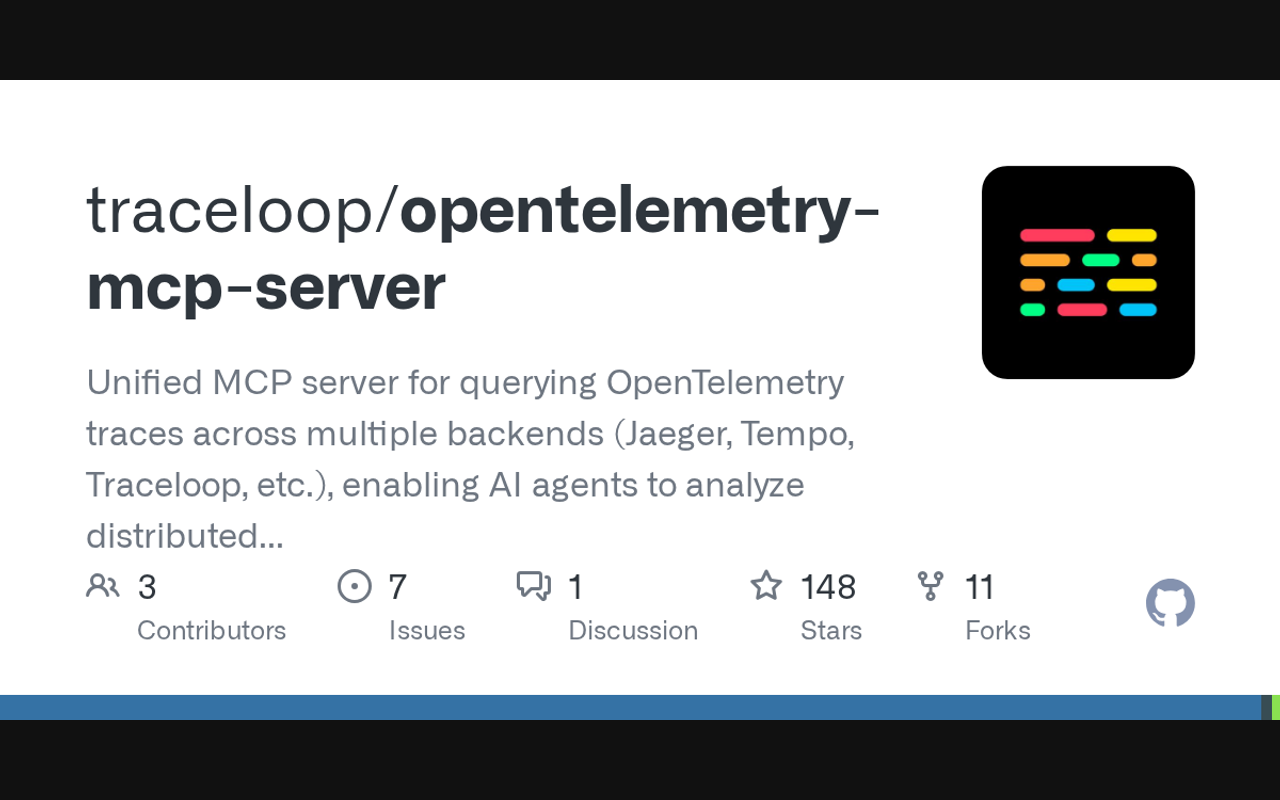 Unified MCP server for querying OpenTelemetry traces across multiple backends (Jaeger, Tempo, Traceloop, etc.), enabling AI agents to analyze distributed traces for automated debugging and observability.