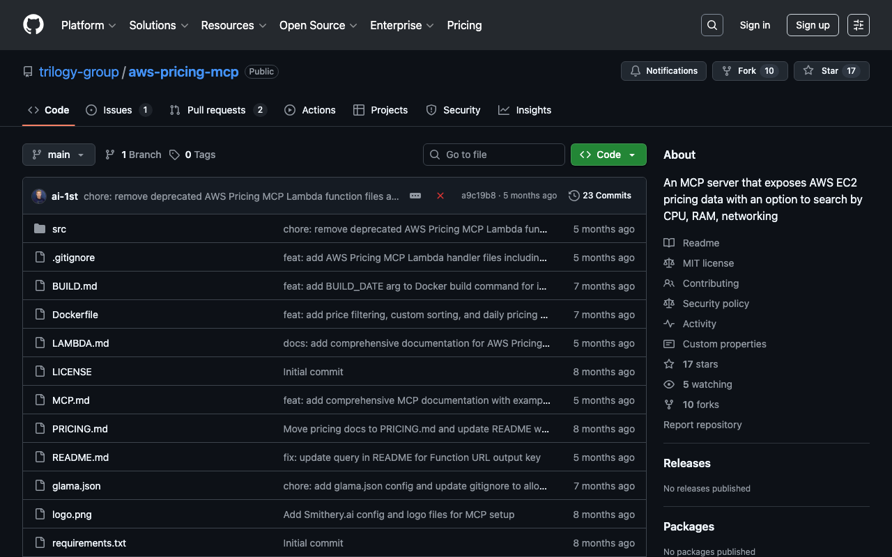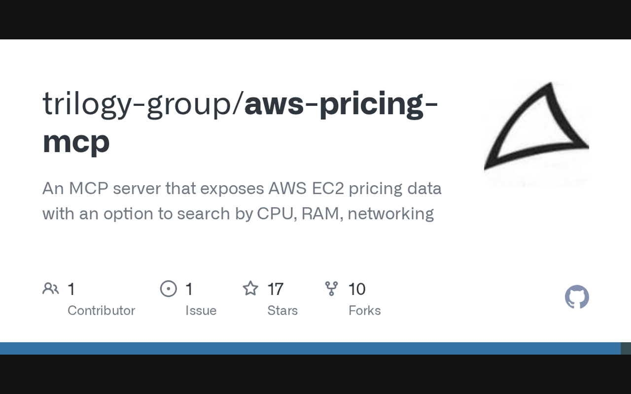 Extend Claude with trilogy group aws pricing mcp capabilitiesIntegrate external data into AI conversationsAutomate workflows combining Claude with specialized servicesBuild custom AI-powered development tools