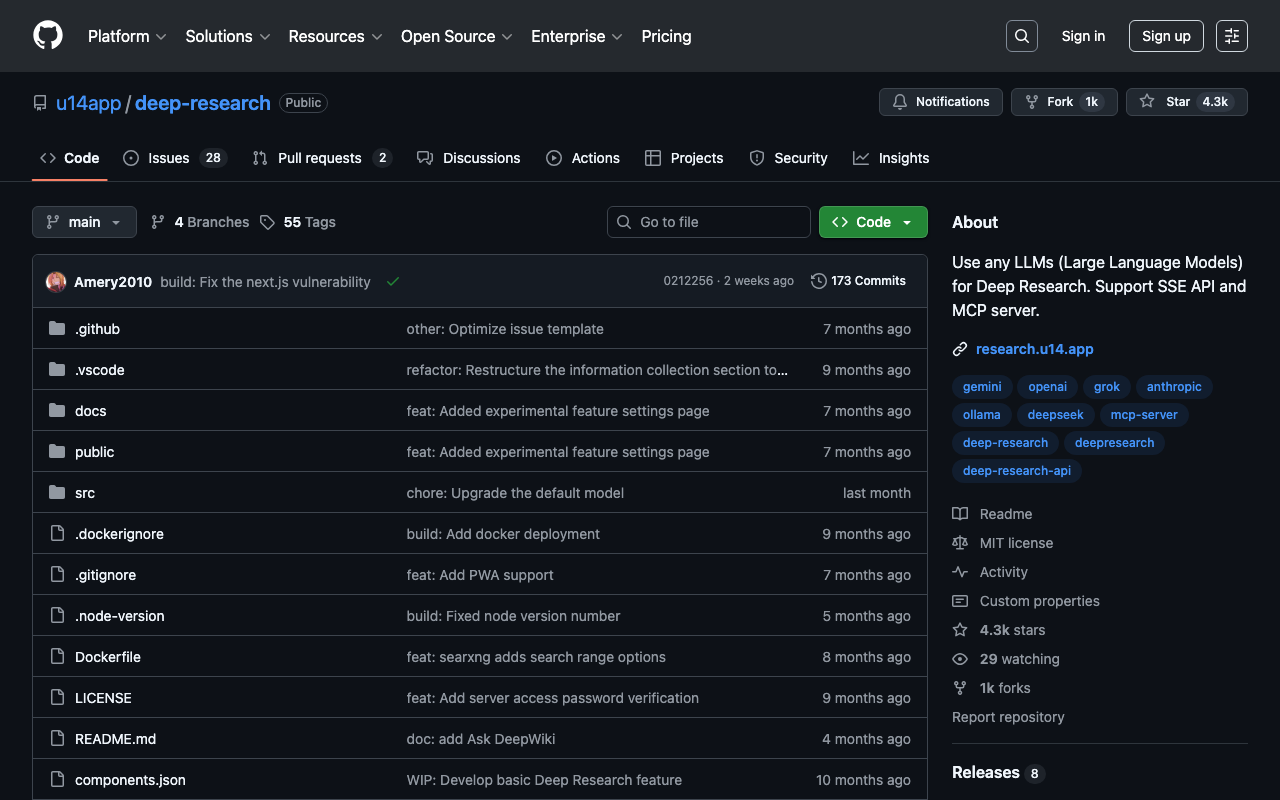 Use any LLMs (Large Language Models) for Deep Research. Support SSE API and MCP server.