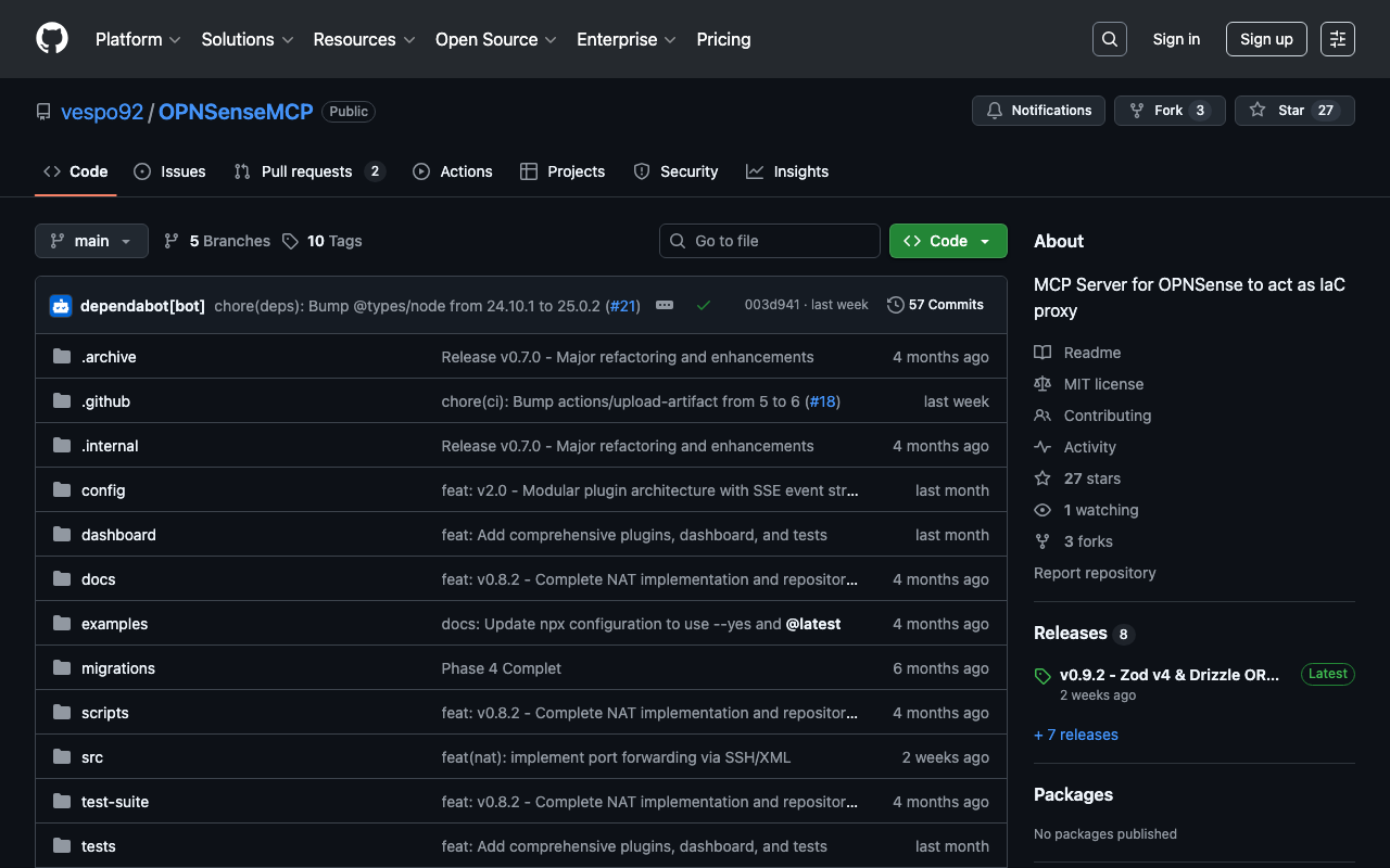 Extend Claude with vespo92 OPNSenseMCP capabilitiesIntegrate external data into AI conversationsAutomate workflows combining Claude with specialized servicesBuild custom AI-powered development tools