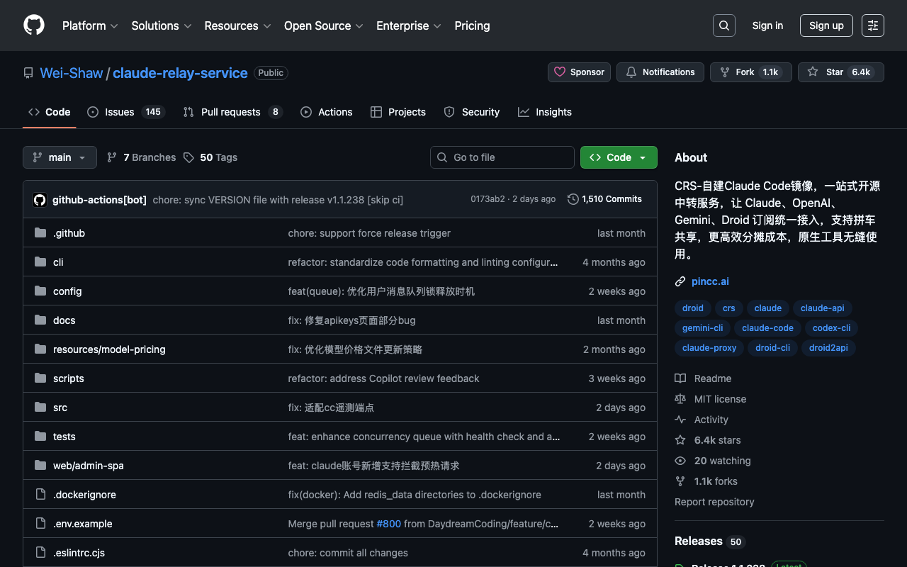 CRS-自建Claude Code镜像,一站式开源中转服务,让 Claude、OpenAI、Gemini、Droid 订阅统一接入,支持拼车共享,更高效分摊成本,原生工具无缝使用。