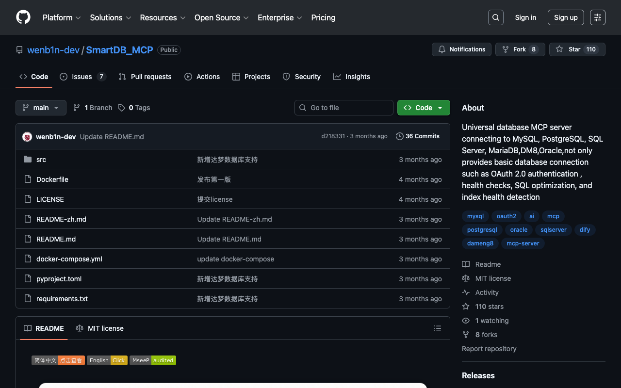 Universal database MCP server connecting to MySQL, PostgreSQL, SQL Server, MariaDB,DM8,Oracle,not only provides basic database connection such as OAuth 2.0 authentication , health checks, SQL optimization, and index health detection