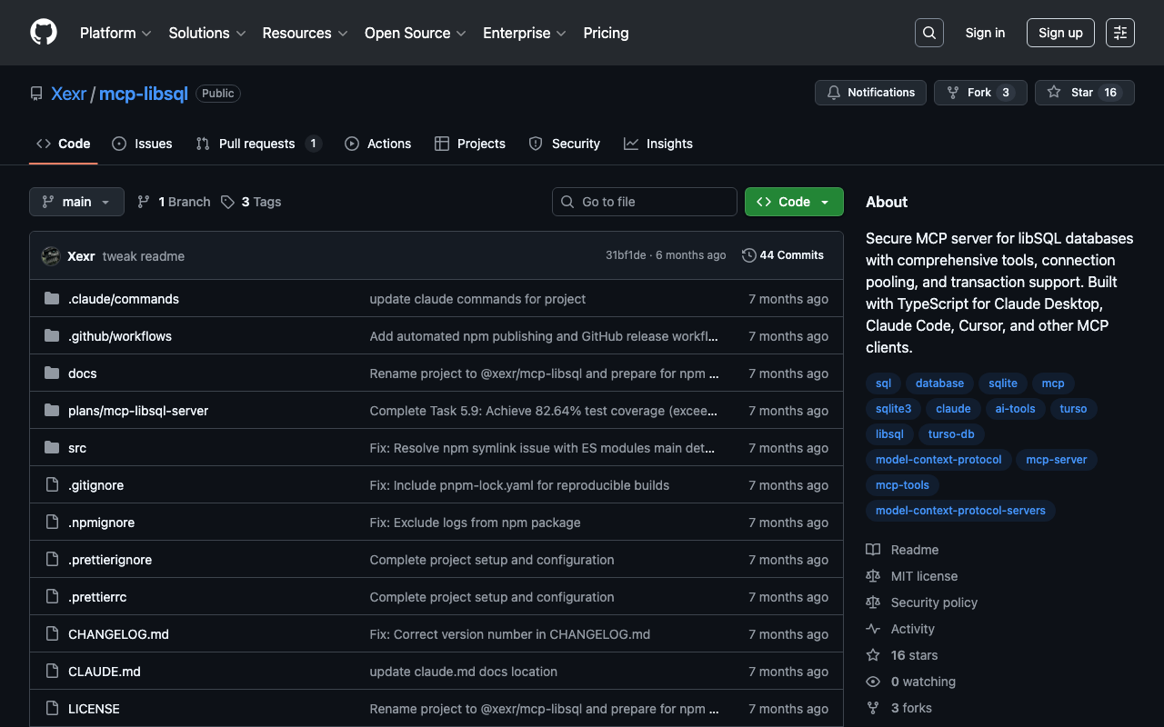 Secure MCP server for libSQL databases with comprehensive tools, connection pooling, and transaction support. Built with TypeScript for Claude Desktop, Claude Code, Cursor, and other MCP clients.