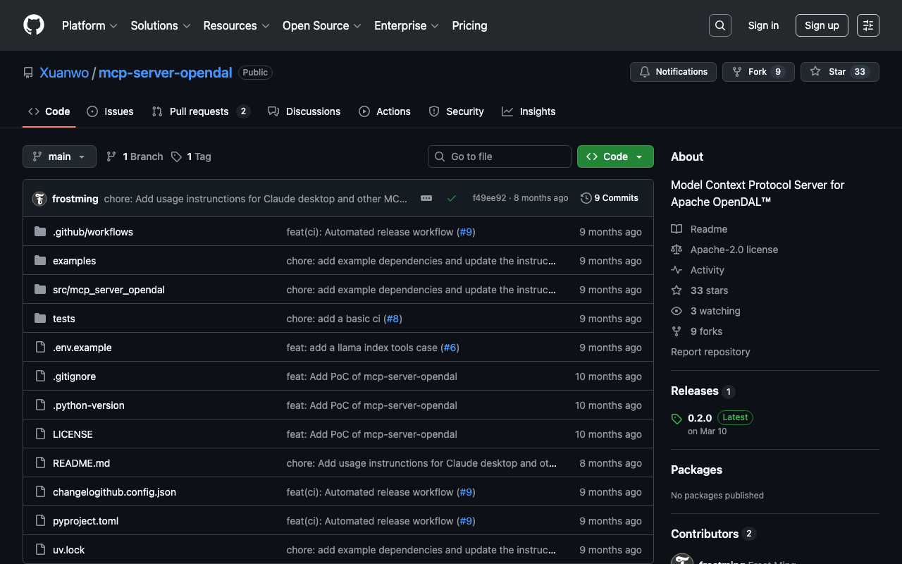 Extend Claude with Xuanwo mcp server opendal capabilitiesIntegrate external data into AI conversationsAutomate workflows combining Claude with specialized servicesBuild custom AI-powered development tools