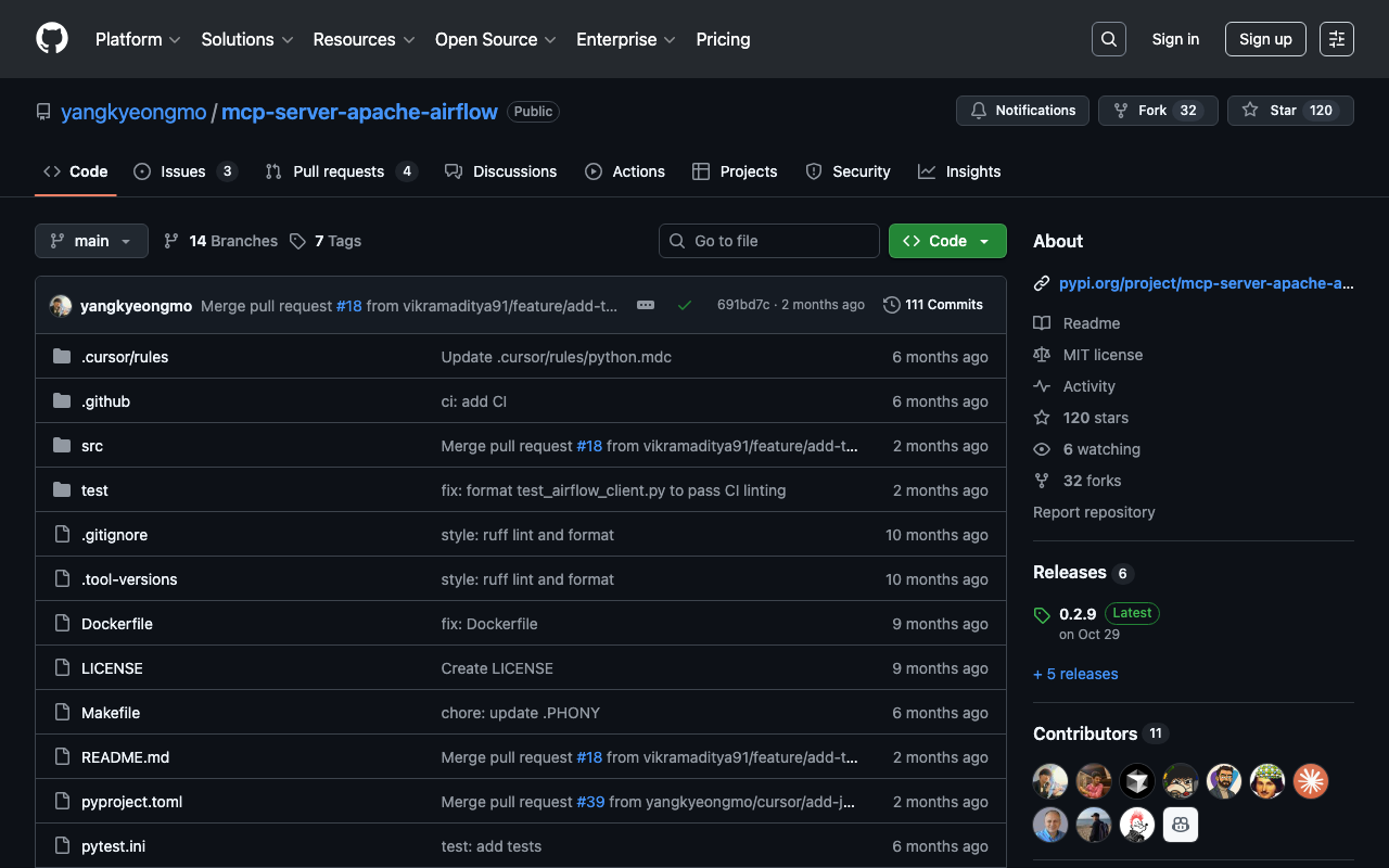 Extend Claude with yangkyeongmo mcp server apache airflow capabilitiesIntegrate external data into AI conversationsAutomate workflows combining Claude with specialized servicesBuild custom AI-powered development tools