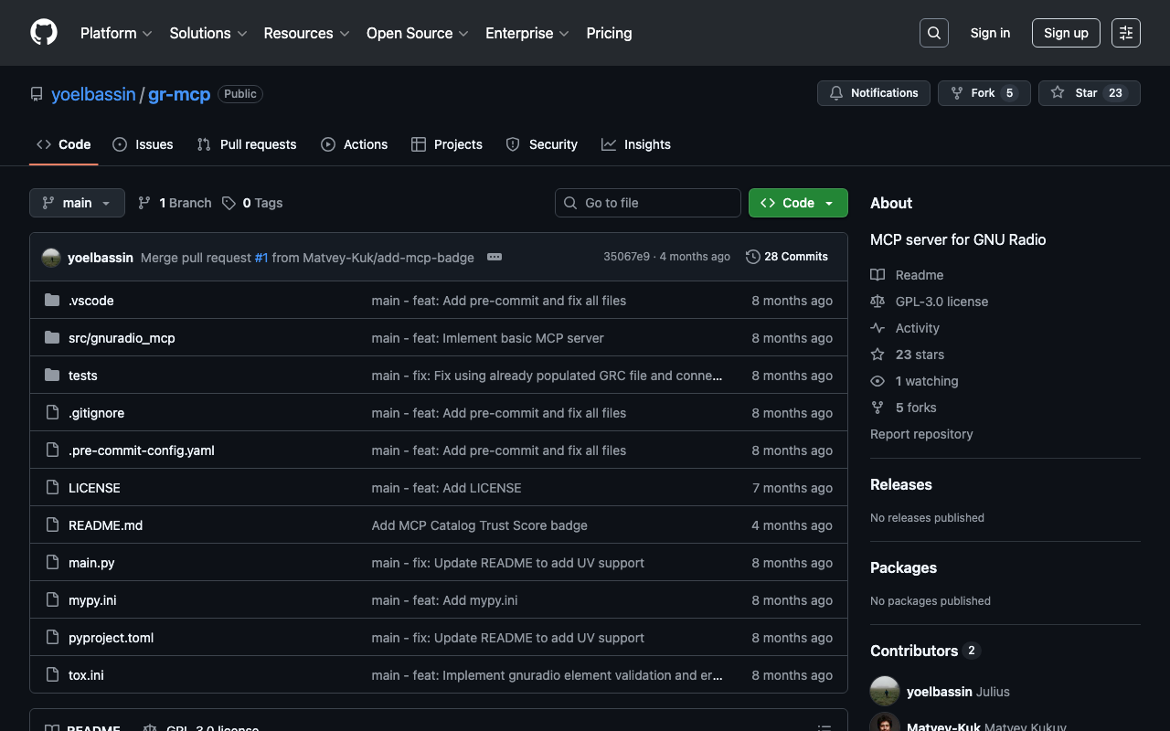 Extend Claude with yoelbassin gnuradioMCP capabilitiesIntegrate external data into AI conversationsAutomate workflows combining Claude with specialized servicesBuild custom AI-powered development tools