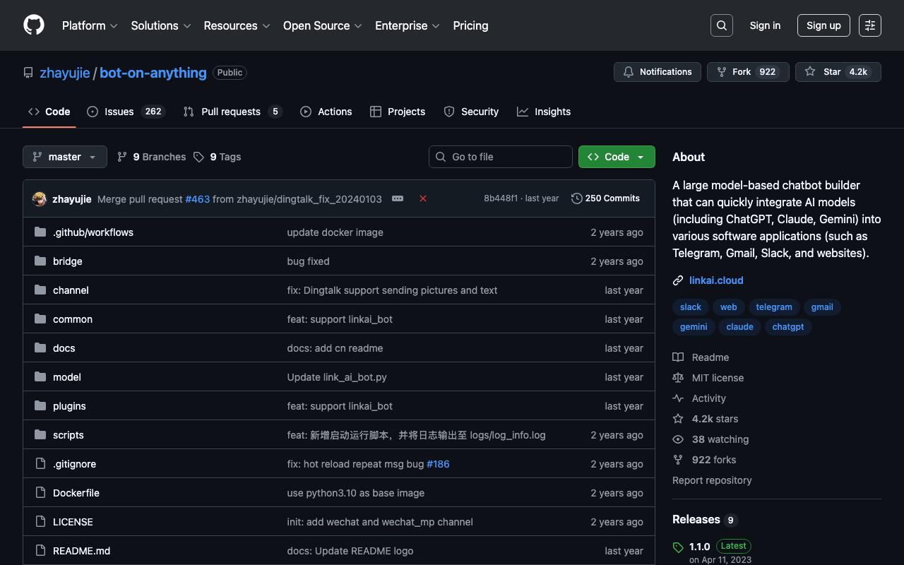 A large model-based chatbot builder that can quickly integrate AI models (including ChatGPT, Claude, Gemini) into various software applications (such as Telegram, Gmail, Slack, and websites).