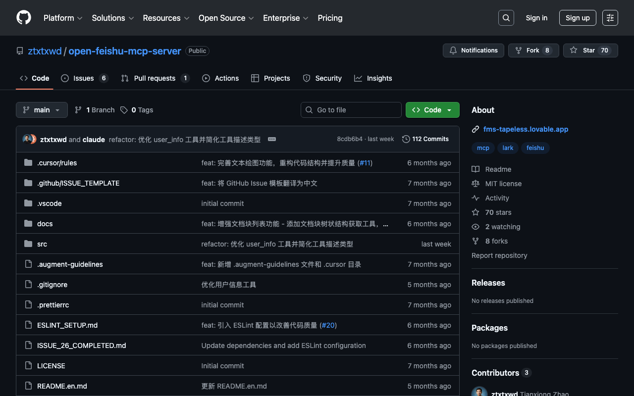 ztxtxwd/open-feishu-mcp-server | Claude Insider Resources